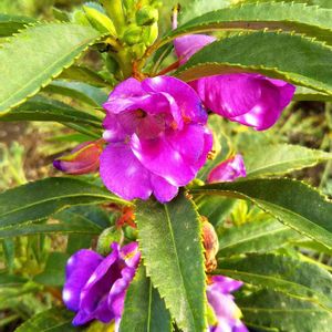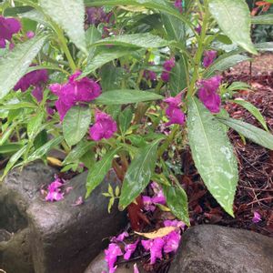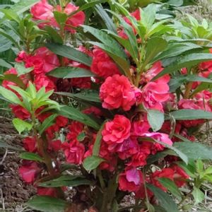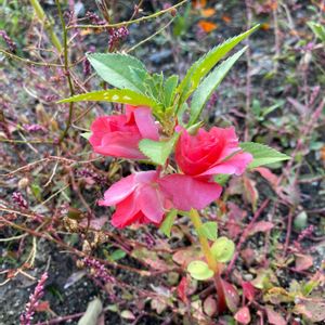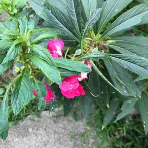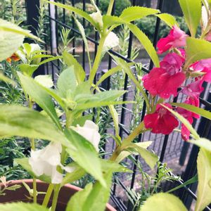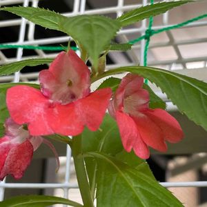 去年、投稿した鳳仙花、苗をいただき、植えた物が先日咲き始めました‼️ 斑入りだけどあまり出ていませんね😊