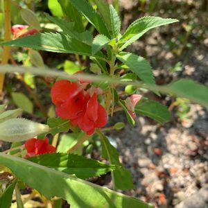 本当に1番の元気者、鳳仙花。 まるっきりほったらかし。 Webで調べたら、オシロイバナみたいに、 花びらを手の爪にこすりつけて、マニキュアごっこが出来るらしい(洗えば落ちる)。