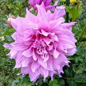 今晩は 今日の朝のお花です😊 朝雨があがったときに ピンク色の大輪のダリア 私の顔くらいあります( > ·̫ <)👍🏻(>ᗜ<)