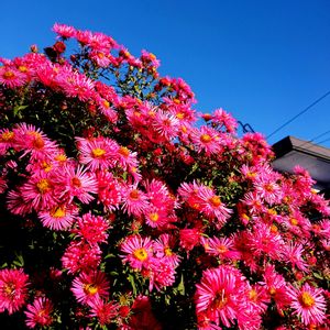 青空に映えるアスター! 丸いフォルムが可愛い! 多くの品種があって様々な色のバリエーションが魅力的!