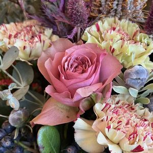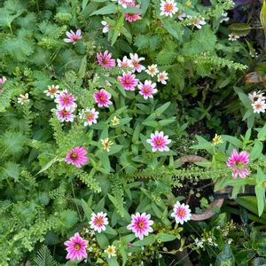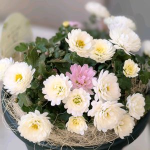 ガーデンマムジジ 満開の中、寒暖差で3輪が 可愛いピンク色に染まりました🩷🌿.∘
