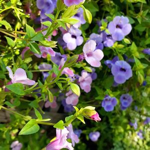 ハンギングの スーパートレニアカタリーナ ピンクリバーとブルーリバー お花と蕾 それぞれ別のハンギング 一株植えです。 液肥は1週間に一度 やや薄めをあげてます。 次々咲くので、 花がらとりが ちょ〜(✘д✘๑;) ³₃タイヘン 嬉しい悲鳴の毎日🤭🥴😂🤣