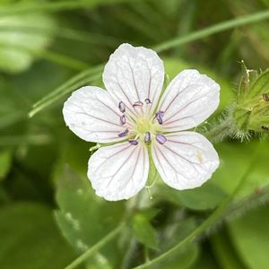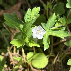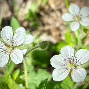 今日2枚目は遂に出会えた❓️ 多分ミツバフウロ🌿🤍🌿 フウロソウ科フウロソウ属 の多年草🌿 ①お花は葉腋から伸びる柄に2個ずつ付き直径1-1.5cm🌿 ②茎と葉柄には下向きの屈毛と圧毛が見られますが短くツルンとした感じ🌿 ③葉っぱです🌿 和名の由来が葉の3深裂する形状に🌿 ④別名がフシダカフウロで目立つ節で ある事に由来するそう💡 ⑤こちらはゲンノショウコと思われる個体の雌性期(花柱が開出)♀ 萼片と茎は下向きの毛がモサモサです🤭 🏷️素敵な水曜日 🏷️自生 🏷️山野草マニア ①②③④裏高尾で🏕️2025.9.7 ⑤奥多摩湖畔で🏞️2025.8.26