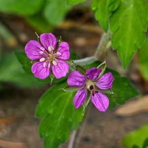 市川万葉植物園の散策路 足元にさく可愛い花 今日のお花 ゲンノショウコ (現の証拠) 25/09/24 ドクダミ,センブリと共に日本三大民薬の一つ 昔より人々の健康を支えてきた伝統的な薬草 (どの薬草のお花も可愛くて素敵ですね) 別名:ミコシグサ 名前の由来となった種を飛散させた後の果実の姿 毎年,今年こそはと願いながら見そびれています😢
