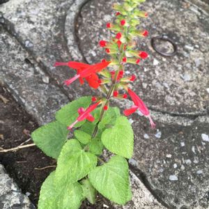 本日の花、サルビアです。 ただ、こちらは他所様の庭ではなく、駐車場の片隅で咲いてました とても小さかったのですが、、 9/25 ユーミンさんに教えて頂き こちらは 【パイナップルセージ】と 言う事が判明しました😅 色々 勉強になります🎵