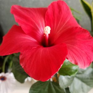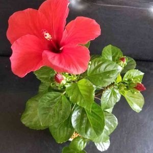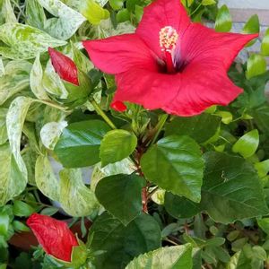 こんにちは。 ハイビスカス🌺 NEWロングライフシリーズ アリオン ついに、咲きました。 真上から撮らないと花が観れません。 きれいな赤い花、3日間くらい観れるかな? 前は、1月22日に、咲いていました。 70日ぶりです。 本来のハイビスカスは、 基本1日花です。 このハイビスカスは、改良されて、3.4日保てます。 花が終わったら、4号から、6号に、鉢増しします。 また、肥料与えます。