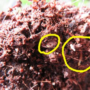 そして、これが一つ前の根っ子の部分を接写した写真です。太い根っ子が張っているという感じはなく、ほんとに微細な根っ子が生えてる感じです。そんな中、黄色い線で囲っているところを観てほしいのですが、よく見ると透き通った薄緑色の根っ子が確認できるかと思います。植え替え直前の写真です。