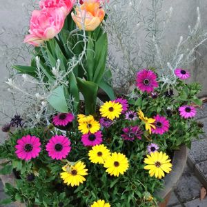 こんにちは😊 今日は風が強く寒いですね〜 玄関先の大鉢ちょこっと植え替えました🤭💕 葉牡丹が 華やかで金魚草を輝かせている(^O^☆♪🩷💜 前にGS友達と花苗買いに一緒に行った時のがまだ植えて無くてやっと 植えました🤭 まだ残りがあるけど苗が足りないʅ(◞‿◟)ʃ