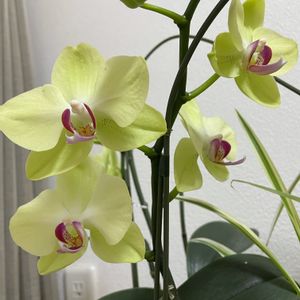 ミディ胡蝶蘭 バーク 3株寄植え (みどりのまとめ有り) 花芽誘導しました!(誘導って言い方合ってるのかな?) 自然なままに咲いてるのもカッコよくて好きなんですけど🤭 やっぱ鑑賞するにはこの形が1番綺麗に見せるんだろうなと、、、、🤔 今更ながら誘導しましたが、ちょっと強引だったかも 蕾たちに影響無いといいのだけれど🥺