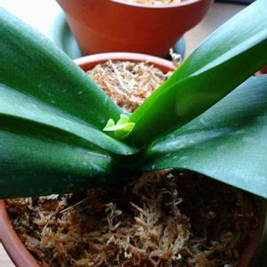 何度も何度も挑戦して、はじめて胡蝶蘭に新芽が出ました🎵 あまりの嬉しさに触ったら破けちゃいました😭