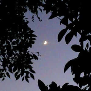可愛らしく輝きだした お月さま🌙 葉っぱのフレームにおさめました スマホでの月撮影には限界があります。もう少しキリッとしたお月さまです