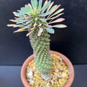 ユーフォルビア・ソテツキリンを購入しました。別名「パイナップルコーン」と呼ばれているらしく、花言葉は「小さな愛」 日光が大好きなので日当たりの良い場所、多肉植物なので「乾かし気味」で育てるようです。 皆さま、注意することあれば、ぜひご指導ください。