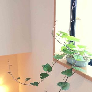 こちらは初登場の安納芋さん もうひとつあったんです(*´꒳`*) 階段の窓においてたらいい具合に垂れてきた✨ 水だとちょっと不安定…土に植え替えようかなぁ…