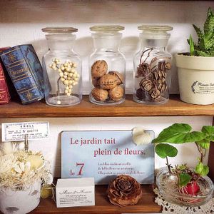 今日のキッチン ブルーのガラスビン新入りです🌿 本当はお酒のビン 飲んでしまったので😁 さつまいもの葉も大きくなって きました✨