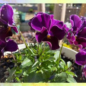 種まきビオラ。ほったらかし受粉。 親はみんな一緒のヨコハマセレクションフレアブルー、薄紫バージョン。兄弟姉妹でも個性それぞれ。