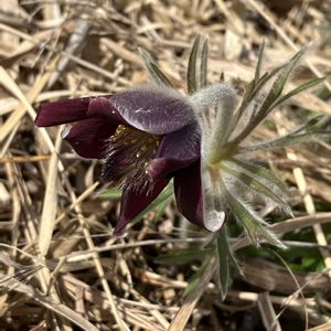 オキナグサの自生地に行ってきました。俯いて咲き、花期終わりに近づくにつれ上向きになるそうです(写真1)花弁に見えるのは萼片で、白い毛にびっしり覆われてます。触ってみるとモフモフで猫の毛のようでした(写真2)。既に綿毛が出始めてる株もありました(写真3)。地元の方々が大切に保護してる場所だそうです。見せていただけて感謝❣4/15栃木県