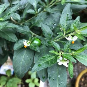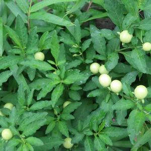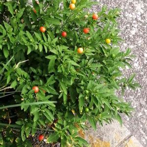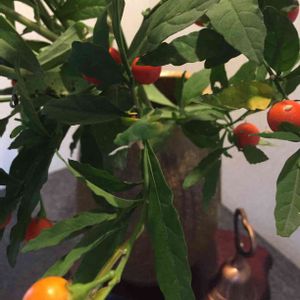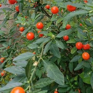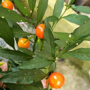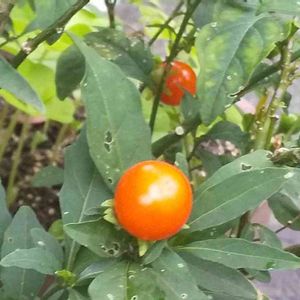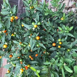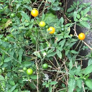一見トウガラシかと、 よく見ると オレンジ色の丸い実が、 沢山なっています。 よろしくお願いします🙇⤵️