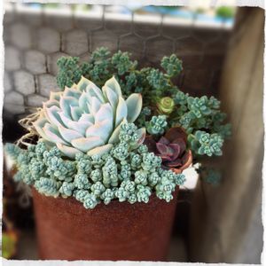 ワイヤーカゴに 木の実&多肉のミニ寄せ植え♡
