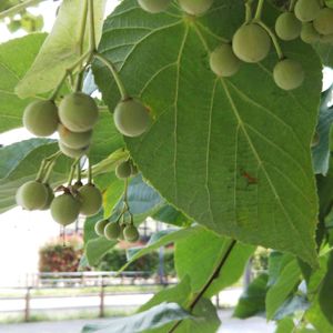 ボダイジュ(菩提樹)の実が出来ていました。 これからもっと色づくと思います🎶 参考に、3枚目に6月の花を🌼 また観察して見てみたいと思います😃