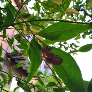 暑い夏の空の下、マンションの植え込み💚 主人が見つけた、セミの抜け殻3つ 少し離れた葉っぱの裏側にも、何個かある 何の木か、わからないけど、 セミには、大人気らしい🌳🍃