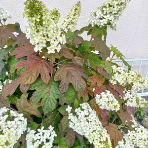 散歩道の柏葉紫陽花①② 我が家のくちなし③