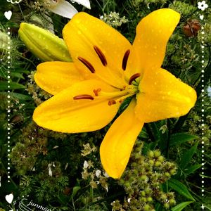 ユリが咲きました🩷💛 梅雨の晴れ間に元気に咲いています😊