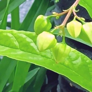 *クサギ* 可愛いガクに囲まれて青みの実が みえます。 これはクサギ という名前らしくて 私には初めてなので 珍しいものでした。 調べてみました。 ***** 名前の由来: 葉や枝をこすると独特の臭いがするため、「臭い木」として「クサギ」と名付けられました。 ただし、 花には良い香りのものもあります。 良い香りのものもある! それなら 良い香りでありますように。。 花の香りを確かめたら 良かったですよね。 又出会いたいお花のひとつになり ました。❣️💜 秋ですネ〜。