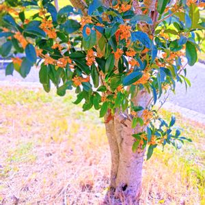 あ、あの香りですよ~。 キンモクセイです。 幹が太くなり 香りを ポケットに 2つ 入れたつもり〜 あ~ 消えてしまいました。 持ち帰りは無理ですよね〜🩷