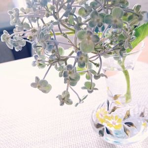 自然にね ドライになってしまった 今年。 最後のオタフクアジサイさん。 花びらが硬いので 程良くドライになってます。 それでも、小さな花瓶に、お水を入れて 挿しています。 暑さのために今年は アジサイの幹は 葉っぱが黄色くなって 枯れそうな枝もありました。 秋には 相当剪定しないとね。 そんなこと考えながら アジサイの下にいる ヒオウギの葉も 黄色くショリショリになっているのが見えます。 ここまてお水をかけるのにはなが~いホースを使わないとね。ホースが足らない。 しんどいな。 みんなしんどい。 今日から 8月です。 厳しい夏ですよね。 お水も大事に使いましょ! ガンバラネバ☘️🩵💚 そうだ。 先日トンボがいたよ。 私に近づいて来て サッと透き通った 羽を見せたかと思うと 行ってしまった。。初tombo