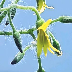 目出度い暑い暑い日です。 暑さ そっちのけ! 6月29日に投稿して以来 ずっと心配だったミニトマトが 嬉しいです。 ヤッター! 花を咲かせま した。 と言うことは ミニトマトがなる可能性があるんですよね。 良いことがありました〜🩷