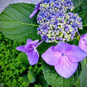 これぞ まさしく、 昔からある アジサイの花。 昔からよく見かけた あのアジサイ。 木陰から ひっそりと 優しく 咲いていました。 大ぶりで、 ステキです... ♪〜