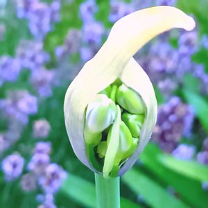なんだか すっごく 可愛くて〜 アガパンサス。 薄紫色の アガパンサスです。 お帽子から 恥ずかしそうに (*^^*) フフフ✨️ 思案してますねぇ? 💚🤍💚🤍💚