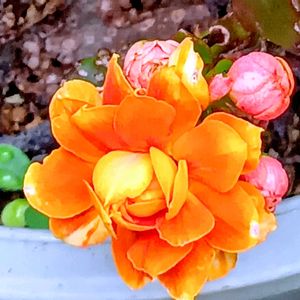 オレンジ色になって咲いているカランコエさん 最初は 真っ赤に咲いていたので やはり暑いせいでしょうか。 葉っぱは しょぼしょぼになってしまっています。 それでも 咲いているので 健気でしょう? この色も記念の色ですよね。 ありがとう🩷 過ごしやすくなればと、、 そうよね。 場所を移動しましょうね。 ♪〜