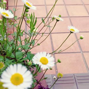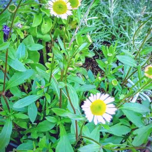 🍀♡ ペラペラヨメナ ✲♡ 🌱 出てきましたよ〰🩷 ペラペラヨメナ 今年は ペラペラしていませんネ〜。 昨年は ヘナヘナしてましたけれど 今年の元気です。 花びらの大きさも違います。 アチコチに 飛んで きっと、増えていくんでしょうね。(*^^*)🤍🩵🤍🩵🍀
