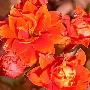 派手派手〜. こんなにも 燃え立つ色で カランコエ! 八重の カランコエ。 八重子さんです。 熱い太陽の下で 燃えたっています。 よく、冬越ししてくれました。