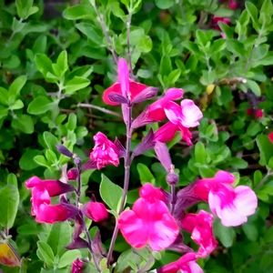 ☆ハーブの仲間 サルビア・ミクロフィラ 可愛い色で咲いて ますね。 このサルビア ミクロフィラが上に立ち上がって沢山咲いてました。 いつもの、ご近所さん宅でーす。 春は花盛り モッコウバラも もう、 ワイワイ言いながら咲いてました〜🩷
