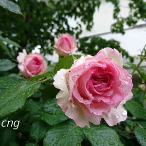 おはようございます☺️ 雨が降りだして静かな朝です。 OR マダムアルディが咲いていました。