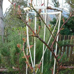 おはようございます。 鉢植えのグラミスキャッスル。 今朝の状態です。あまり株は、大きくありませんが、新芽が出てきてくれてます。