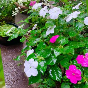 ☔️その今朝の裏庭 ⬅️に水草の水鉢、ここに🐟🐟入れたいの。 インパちゃんは、他に挿し穂鉢があるけど切り戻ししそこないました。(こちらもっとしたかったけど一生懸命咲いてるからup♪) 今からしてもダメかしら😆 何枚もup🙇♀️