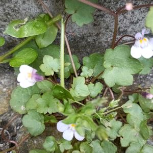 石垣と歩道の隙間に生えていたツタバウンラン。 陽当たりのいいとてもいい場所に陣取っていました❣️
