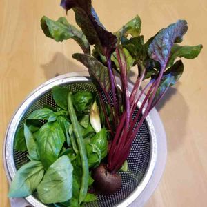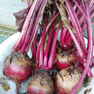 ビーツ 庭の畑エリアに植えたビーツ。 大きく育ちました。😄 葉は、ミックスサラダにしてます。😊