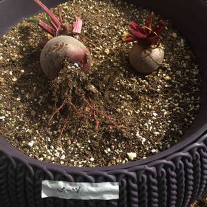『ビーツ』 水につけ置きし始めたよ❣️ 根っことか出てくるかなぁ🤔🤔 根っこで出来たら土に植えようかなぁ❣️ 質問 根っこなど出ますか??
