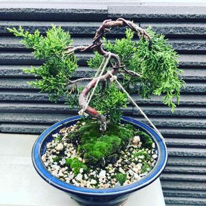 香川で買った真柏の盆栽 見よう見まねで針金かけて、彷徨ってます 盆栽教えてくれる人が身近にいたらええのに🧐