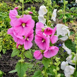 タ チ ア オ イ (立葵) アオイ科の 多年草・・・ タチアオイの花は 梅雨に入る頃に 咲き始め、花茎の1番上まで 咲くと 梅雨が 明けると言う・・・ 👀 まだ 明けそうにないな~ 💦