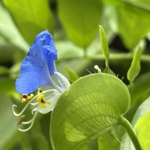 土砂降りあがり散歩 7月16日 傷んでいるものもあるけれど色鮮やかに見える いつもは💙💙ばかり見ているのに なぜか、黄色💛の中の🤎茶色が気になった 花弁3枚 雄蕊6本 👀‼️ 今日の今日まで知らなかった 今日のお花✨ 🙇♀️🙇♀️🙇♀️