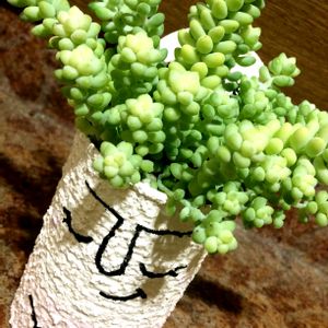 昨日狩ったビア-ポップを トマトのリメ缶に入れてみました♡ ドレッドヘア-(*´罒`*)ニヒヒ コレがやりたかった! お顔を描いたリメ缶には セダムを植えて並べようと思います♡♡♡ セダム属 ビア-ポップ
