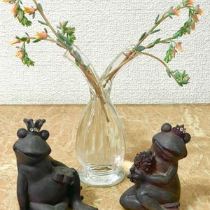 美尼養老の地味目なお花💐 1つの瓶に2種類のドレッシングを入れられるボトルを、花瓶代わりに使いました😃 今日は暑いので、かえるのご夫妻で少し涼しくなりましたか?←←(気味悪くて........😱)