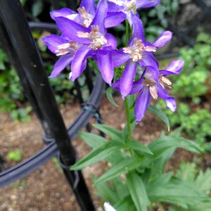 台風の余波??風が強く、時折ザーッと雨が、、、ムシムシです😰 お庭は寂しいけれど、切り戻したデルフィニウムの脇芽からお花が😊 ありがとね💕😊