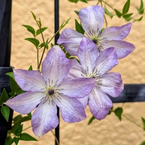 こんばんは😊 クレマチス ベノーサ・バイオラシア(ヴェノサ・ヴィオラセア) 二番花です。 春よりもだいぶ淡い色で咲いています✨ 今朝、久しぶにまとまった雨が降りました。 植物たちも喜んだことでしょう😄 が、雨後の草の成長も恐ろしいです😱