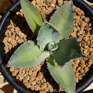 このアガベご存知の方いらっしゃいますか?🙋 はじめての出会いだったのでお迎えしました。 デザートダイヤモンドというらしいです。 吉祥冠錦よりは斑が多くスーパークラウンよりは少ないらしいのですが… 個体差じゃね❓ まぁかわいいは無敵❕